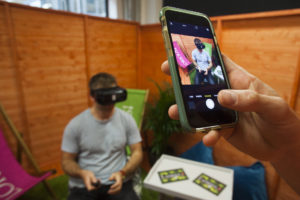 Myles Hopper and Giles Humphries were the first people to test the novel concept of VR mindfulness at the event yesterday.